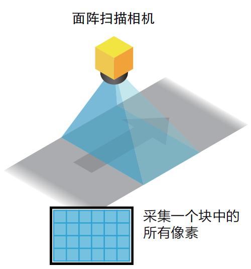 面阵扫描相机照亮物体,并采集所有曝光的像素以构建图像。相比之下,线扫描相机点亮并逐个线条采集像素。