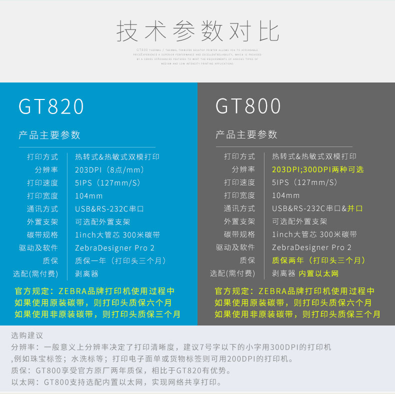 以下宝贝详情所展示的产品型号为:ZEBRA斑马GT800的300DPI选项,非GT820。请知悉!
