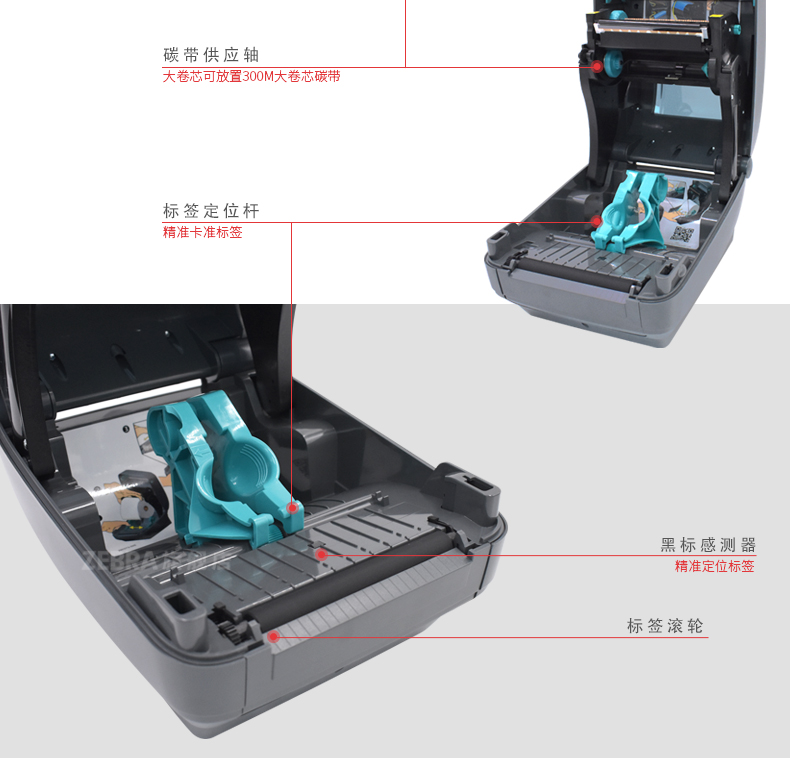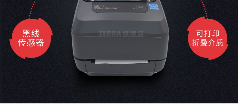 斑马zebra GX430T 条码打印机 分辨率:300dpi 碳带容量:74m 内部标签外径:0.5英寸 标签宽度:19mm-104mm 通讯接口:USB/RS232/内置以太网口
