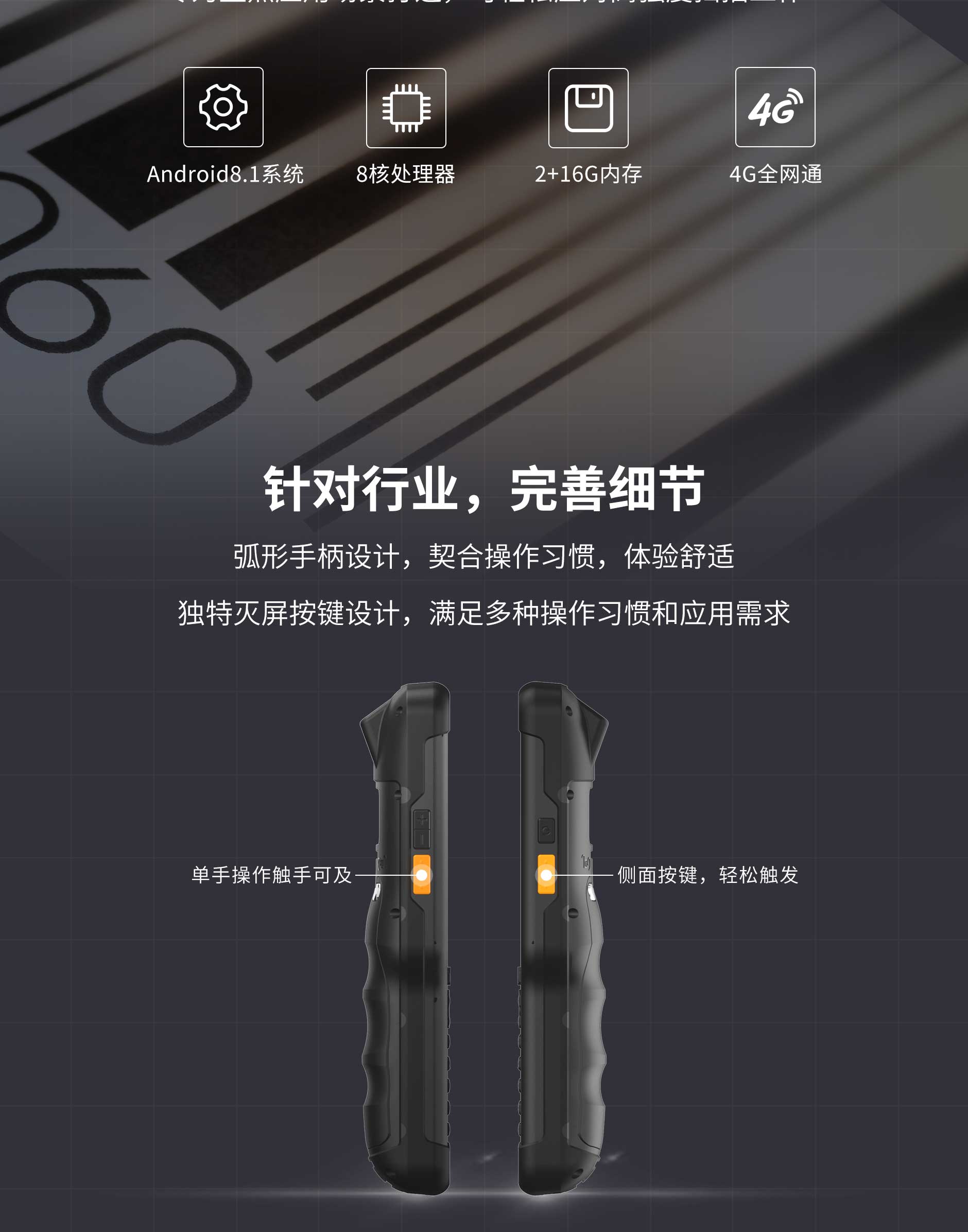 思必拓SC35(H) 长键盘条码手持终端8核 2.0GHzAndroid 8.135个物理按键(2个音量键,1个电源键,2个功能按钮)RAM :2GBROM:16GBBT4.1 BLE新大陆N13.5寸,IPS高亮屏IEEE 802.11 a/b/g/n 2.4G/5G双频5200mAhIP65 防水防尘1.5m 抗跌落SC35(H) 基本参数处理器8核 2.0GHz操作系统Android 8.1存储RAM 2GB ROM 16GB屏幕尺寸3.5寸,