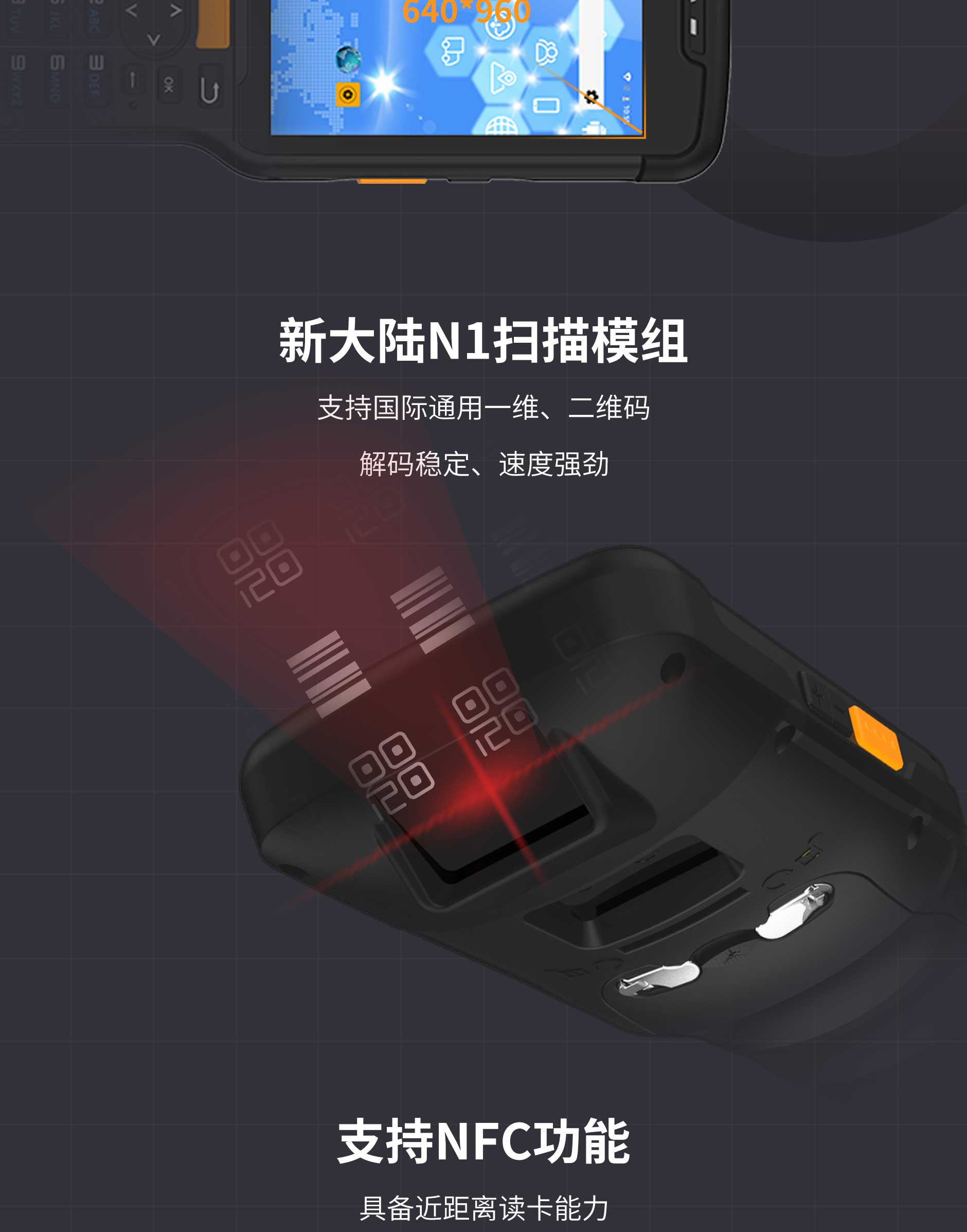 条码扫描支持码制 | 新大陆N1 Code 128, EAN-13, EAN-8, Code 39, UPC-A, UPC-E, Codabar, Interleaved 2 of 5, ITF-6, ITF-14, ISBN, Code 93, UCC/EAN-128, GS1 Databar, Matrix 2 of 5, Code 11, Industrial 2 of 5, Standard 2 of 5, Plessey, MSI-Plessey,PDF417、QR Code、Data Matrix |