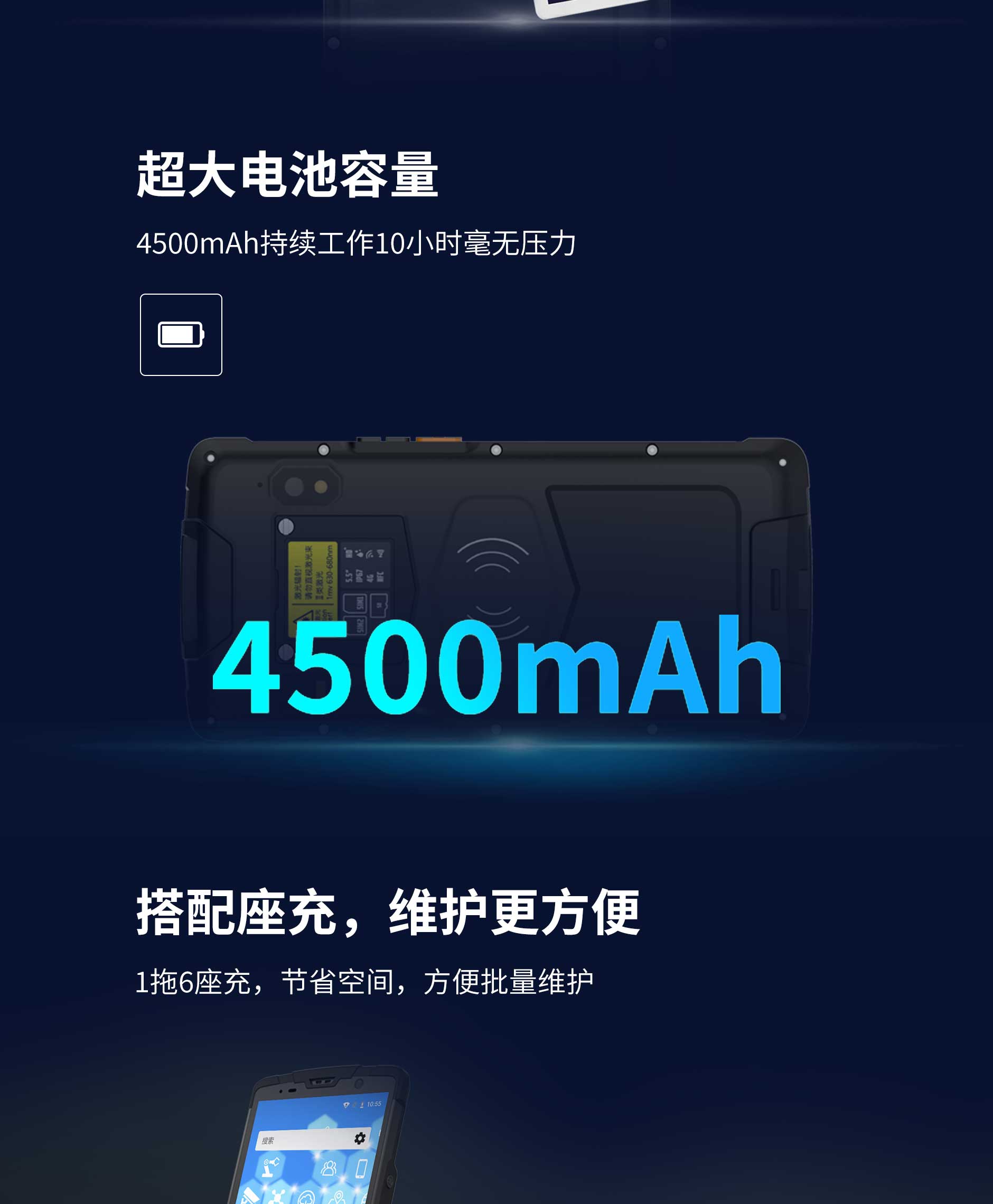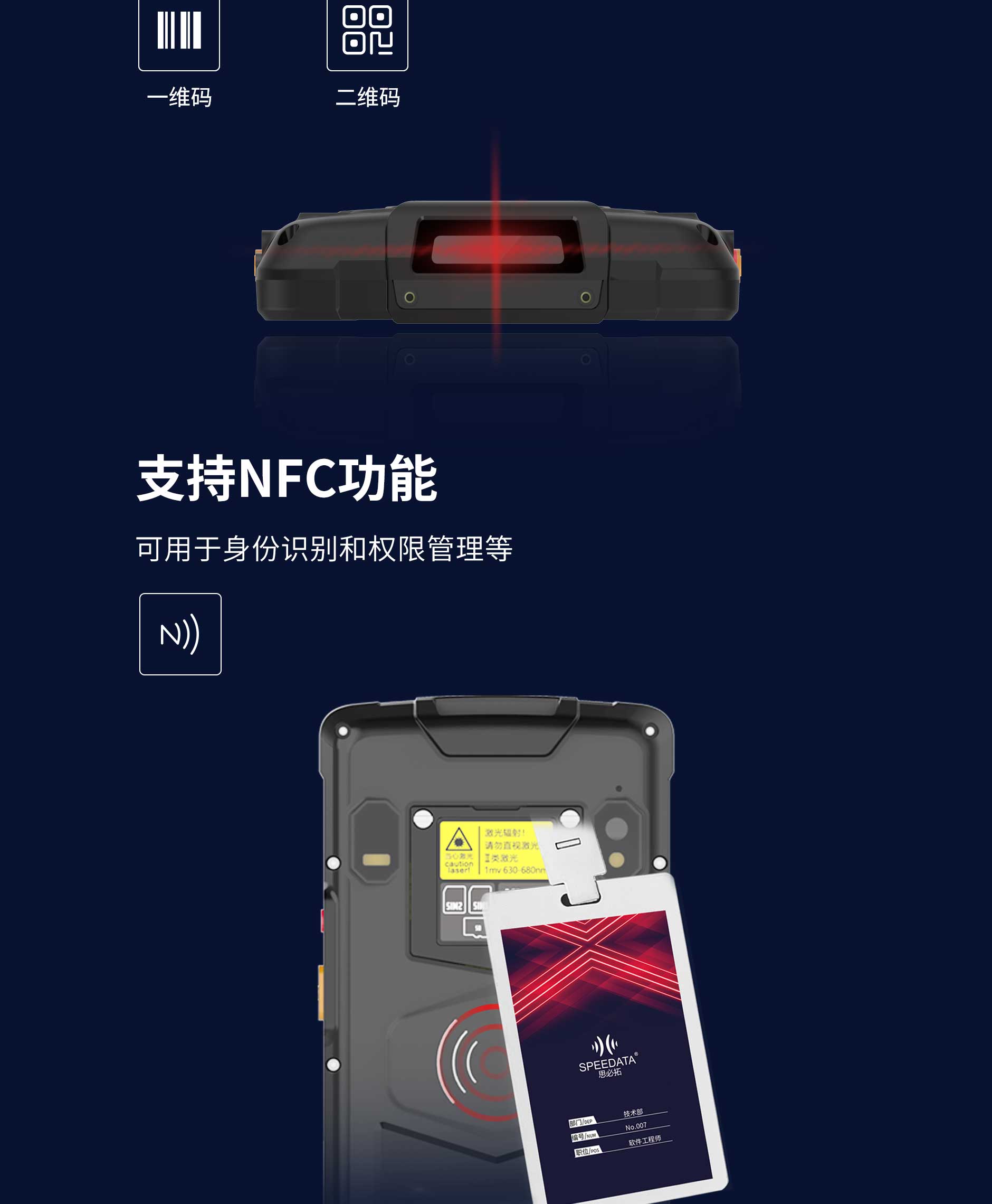 思必拓SC55全屏条码手持终端仓储管理8核 2.0GHzAndroid 8.12个音量键,2个功能键左右各一个,1个电源键RAM:2GB/4GBROM :16GB/64GBBT4.1 BLE后置1300万自动对焦摄像头;高亮度LED闪光灯, 前置500万定焦摄像头CM60或N66035.5寸 IPS高亮屏IEEE 802.11 a/b/g/n 2.4G 5G双频4500mAhIP65 防水防尘1.5m 抗跌落SC55 基本参数处理
